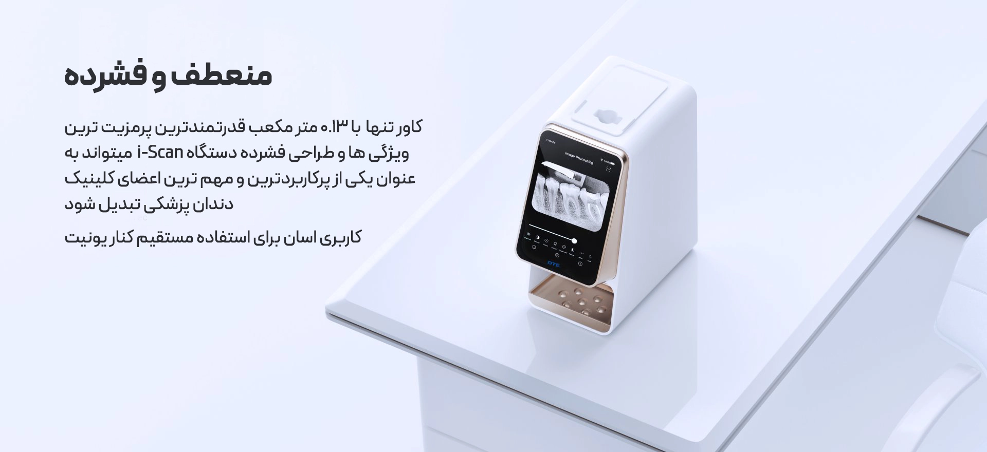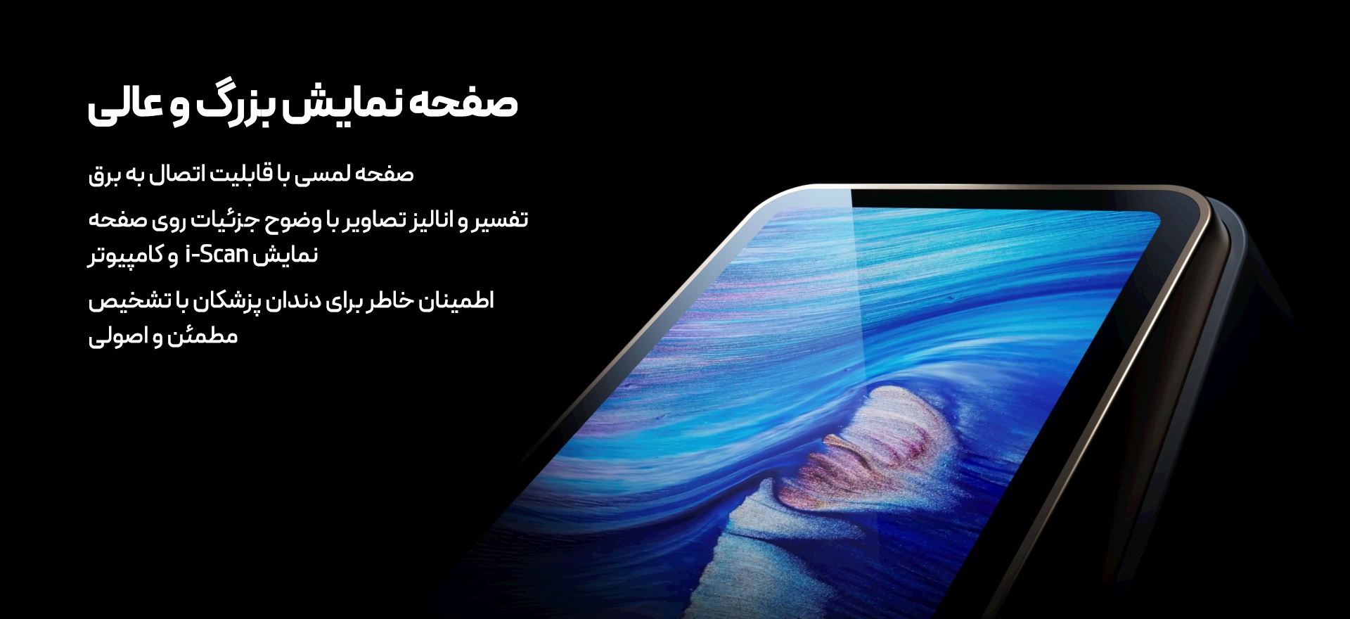 سیستم FPGA به عنوان یک کمک پردازنده مورد استفاده قرار میگیرد. و بخاطر قابلیت پردازش تصویر قدرتمندتر تجربه پردازش تصویر واضح و شفاف به ارمغان می اورد “صفحه نمایش بزرگ و عالی” (وضوح تصویر فوق العاده بالا…) صفحه لمسی با قابلیت اتصال به برق تفسیر و انالیز تصاویر با وضوح جزئیات روی صفحه نمایش ISCAN و کامپیوتر اطمینان خاطر برای دندان پزشکان با تشخیص مطمئن و اصولی